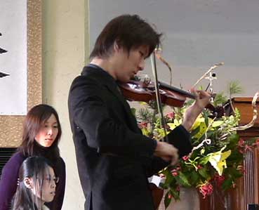 バイオリン演奏の姜隆光、ピアノ伴奏の金聖香