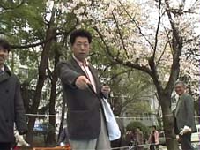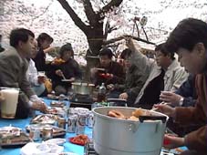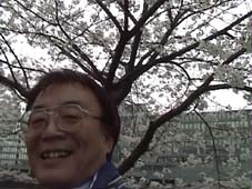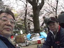 さくらの花は満開です。 私とステさんは自転車で行きました。 |