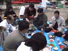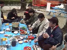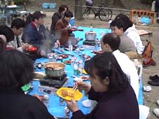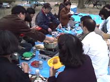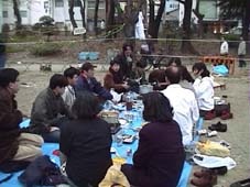 今日はさむい! 火を囲んで、 新井さんの指示が始まった。 |