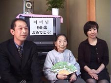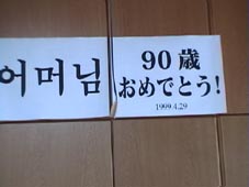 1999年4月29日、オモニ(ゆんなみ達からはハルモニ)の90歳のお祝会を行った。