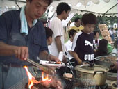 焼肉屋は大繁盛、汗をたらたら流しながら、肉を焼くのにおお忙しい。あーん、食べてえ。
