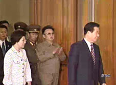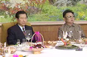 김대중 대통령과 김정일 국방위원장이 16일 평양 순안공항에서