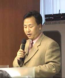 | 会場は韓国ベンチャーIRセンター。 まず、大阪韓商の会長挨拶から。 |