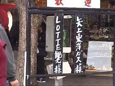 | 天守閣の広場の売店。 ロッテ観光の札が架かっている、韓国の団体でも来てるのかな。 |