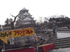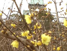 | 梅林の入り口だ。 | 大阪城をバックに梅の花をおさめるのは、なかなか光り加減がむつかしい。 | |||||||||||||||