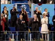 IOCのサマランチ会長も立ち上がって感慨深そうに拍手。場内からも大きな拍手の波がわき起こった。