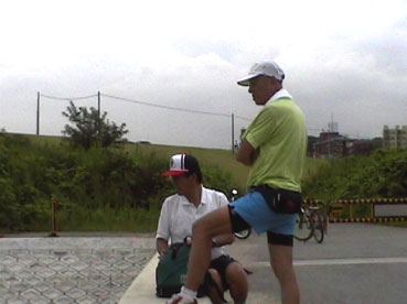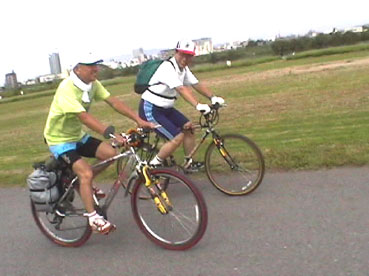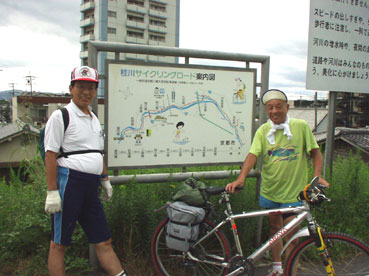 | 途中で、サイクル仲間に道順を聞く。 | 折り返し時点、桂川、宮前橋。出発から約35キロのところ。 | |||||||||||||||||||||||