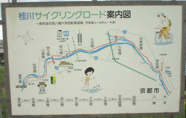 大阪城公園口の噴水のところから出発、桂川の宮前橋まで、約35キロのところまで。