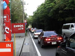 | 箱根の山に入った。仙石原の方へ | 車にもめしをやらないと。ガソリンスタンドの前もこんなに車が混んでいる。 | ||||||||||||