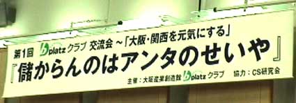 大阪・関西、元気がないぞ、と言われて久しい気がします。しかしそんな中でもどっこい頑張っている人もいます。 「b−platzクラブ交流会」の第1回目の講師には、今回のテーマにぴったりの、ナニワのスゴ腕再建屋として注目を集めている日本アシストの桂 幹人氏をお招きしております。桂氏自身の苦い倒産経験から無為な倒産を防ぐべく商売における秘伝を書いた著書、『儲からんのはアンタのせいや−企業再建「五つの鉄則」』(講談社)が反響を呼んでいます。 "あなたは「儲からない」のではなく、「儲けようとしていない」のだ。「売れない」のではなく、「売っていない」だけなのだ"と企業経営者に熱く語ります。