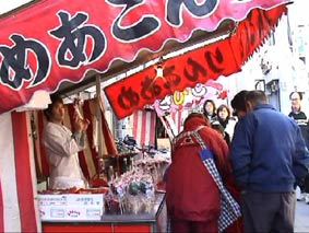 | 御幸森神社では縁市が、出店が賑わう。 | ||||||||||