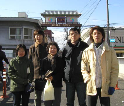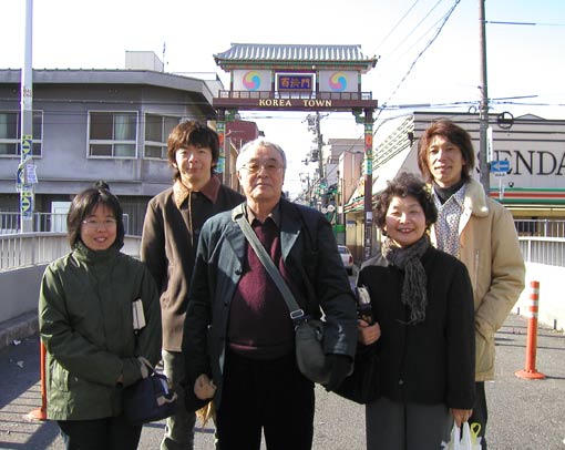 | 私の家族が全員そろった。 3兄弟の長男ゆんなみ(允男)、次男ゆんちょり(允哲)、三男ゆんす(允樹)と次男の嫁ちか子さん、合わせて6人。 そろって教会へ行って新年礼拝をすまし、帰り御幸森のコリアタウンで写真を撮った。 |
