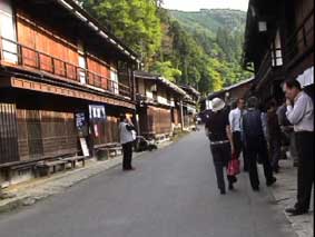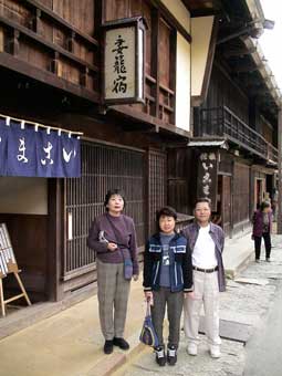 | 最初の観光地は宿場町「妻籠」。タイムスリップしたような町並みに懐かしさを覚え ながら(私はいつの人!)、風情ある郵便局から絵はがきを投函♪ その夜宿泊した「望川館」はお部屋もそこそこで、お料理も美味☆ でも卓球をする時間がなくて残念(2)。 |
