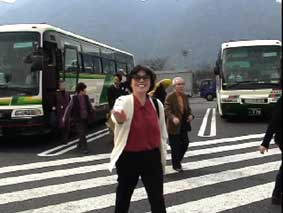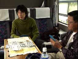 車酔いする私は、12名で貸し切りなのでゆったりと最前列に席を陣取り移動中ひたすら眠っていたため、男性陣が興じていた賭トランプに参加できず残念(1)。電車なら…(涙)。 |