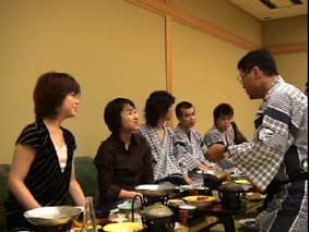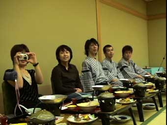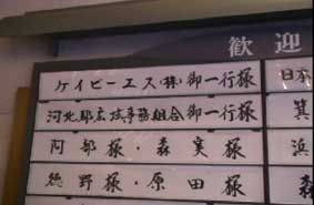 ソウルを想定して決められていた韓国事情に強い幹事のお二人が企画した国内旅行は、 下呂温泉一泊二日。 果たして、少し肌寒くなりつつあった2003年10月10日(金)午前9時、社長の強い要望で貸し切りバスをチャーターし、JR桃谷駅近くから目的地・岐阜の下呂へ向けて出発! (記事:田庭) |
