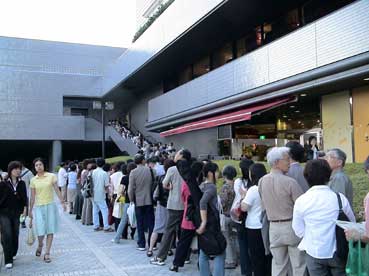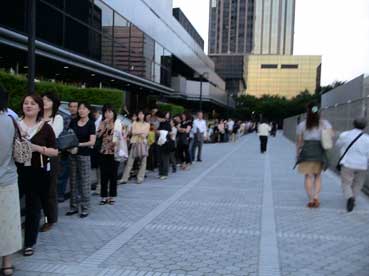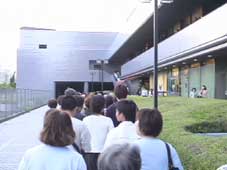 | 映画が始まるのは、午後7時半からだが、一時間前の6時半頃会場に着くとこのように、列ができていた。 いかに韓国映画が熱いかをものかだっている。 |