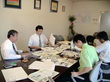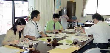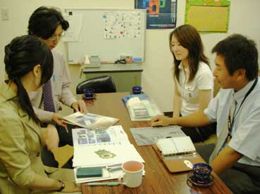 | 7月5日、会社案内制作の最終打合せを行った。 ゴールド工業の村田社長、石山さん。KBSからは允男社長、辰巳さん、担当の愼さん。そして私。 |
