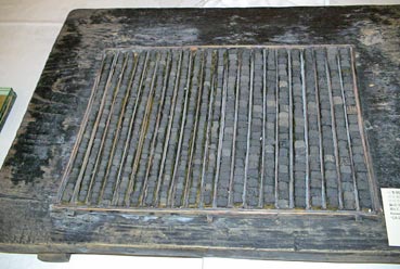 | 李朝時代の木活字と組版するときの台。1420年代から使われていたという。 | ||||||||||