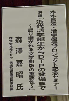 本木昌造・活字復元プロジェクト記念セミナーが2004年10月19日13:30から、
