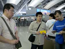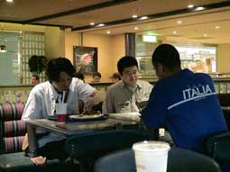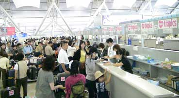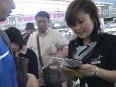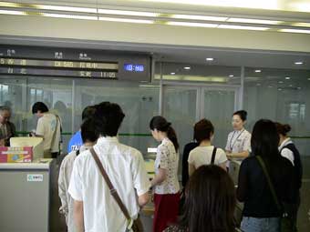 | 阪急トラピックスのカウンターにはいろんな方面への団体客が集まった。 |