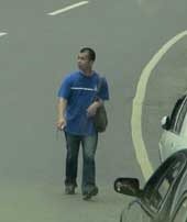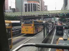 市バスの停留場が道路の中央にあった。これはいい。 |