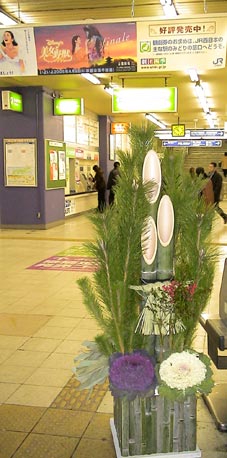 お、鶴橋駅に門松が飾られている。