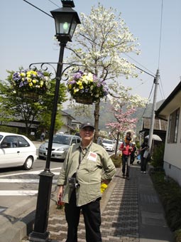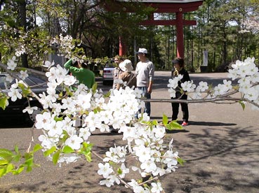 5月にサクラが見られるとは。高遠(たかとお)花の丘公園で参加者全員。