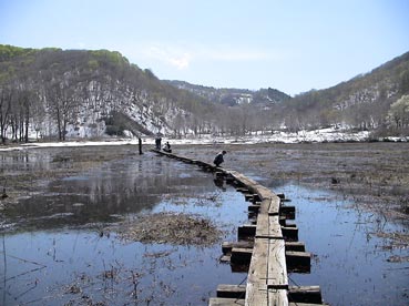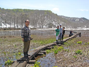 まだ雪が残っている斑尾(まだらお)の沼ノ原湿原(原生花園)へ行った。
