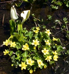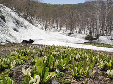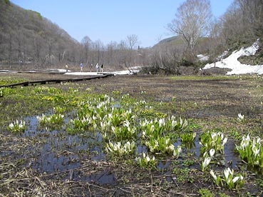 | 沼ノ原湿原(原生花園)雪のは、リュウキンカという可憐な花が咲いている。 | |||||||||