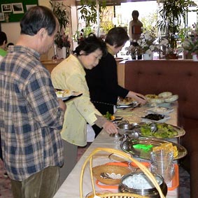 | 朝食はバイキング形式だ。 | |||||||||