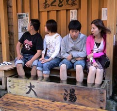 外湯(共同浴場)が13カ所あって、無料で誰でも入れる。私たちは2カ所入った。