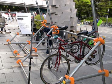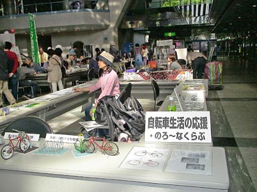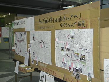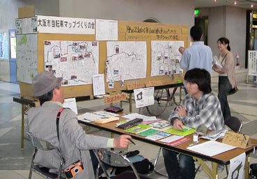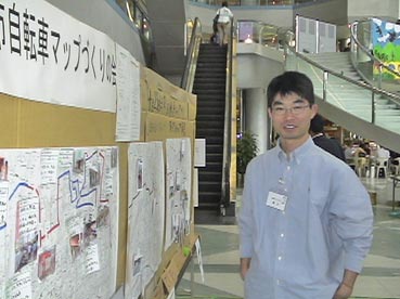 | 4月23日、自転車マップ作りしたのを展示。 | 自転車マップ作りの青木さん。 | ||||