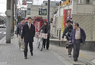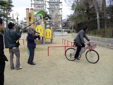 | カメラマンと関西テレビの中嶋記者 「後は公園で乗りましょうか」 |