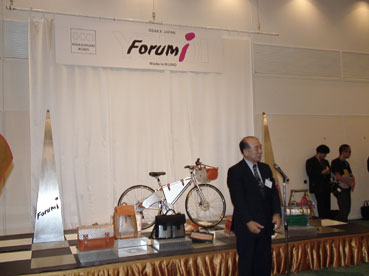 交流パーティーのときは特別にフォーラム・アイの自転車を展示した。