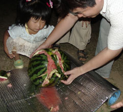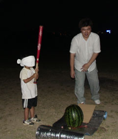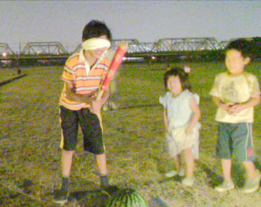 今回は例年より子供たちが多く参加し、花火やスイカ割りに大いに喜んだ。