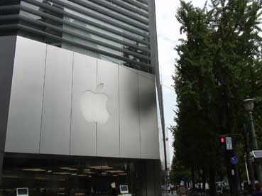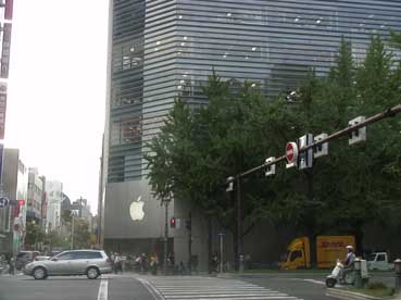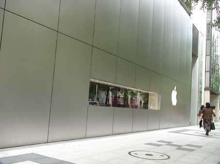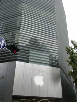 | 心斎橋大丸の向かえあたりにあるアップルのマークがある建物が「アップルストア心斎橋」だ。 シンプルなデザインで、なんか、冷たい感じがする。 |