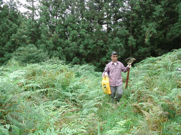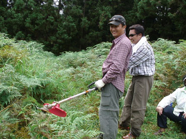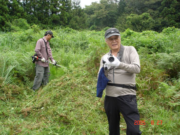 | 草刈り機で刈り始め。 | |||||||||||