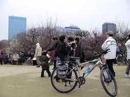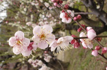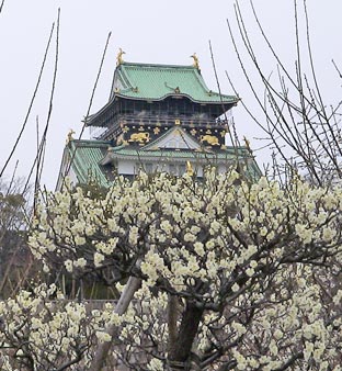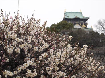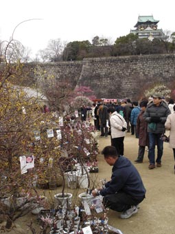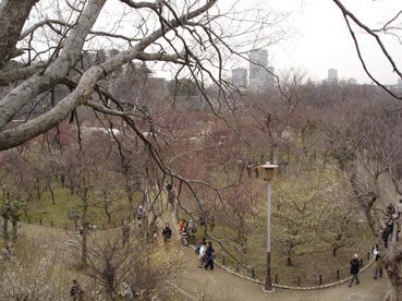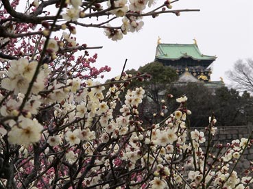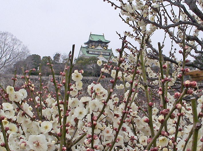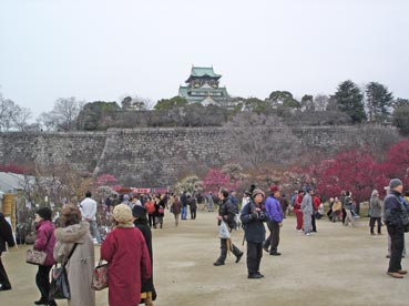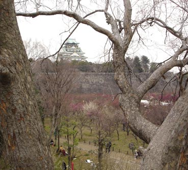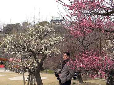 2005年2月13日に大阪城梅林へ行った。 残念ながら、曇りであった。でも、たくさんの人たちがいた。 梅の花はだいぶ咲いている。でもまだまだ満開にはほど遠い。