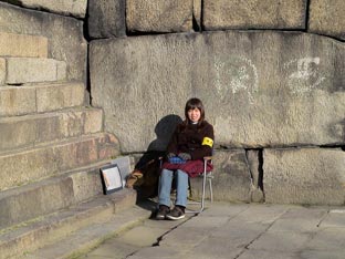 通る人の数をチェック。朝8時から現在午後4時まで、自転車は10台ぐらいしか通ってないという。