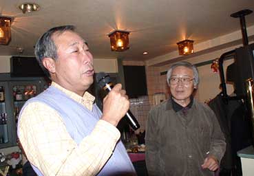 | 済州から駆けつけた7期の辺チャンウン先輩を 金校友会会長から紹介。 辺先輩とは、ジェジュにいる校友生やソウルなどでも校友生をも連絡を取り合っていくことにした。 |