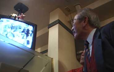 先輩たちは自身が映っている映像を見て、建国生時代を懐かしみ、そのときに帰って、大いにはしゃいだ。