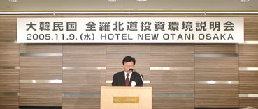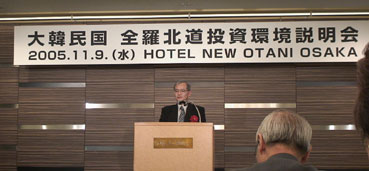 2005年11月9日、ホテルニューオータニ大阪で、KOTORA大阪の世話による、 韓国全羅北道への投資環境説明会が行われた。