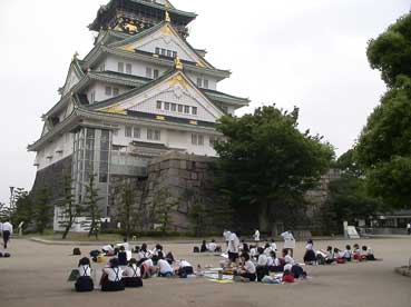 | 学生たちが大阪城をスケッチしている。 | ||||||||||||