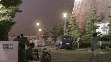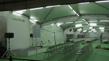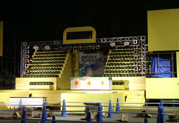 | イベントの舞台設置。なにかか並んでいる。 | |||||||||