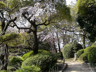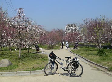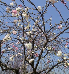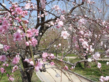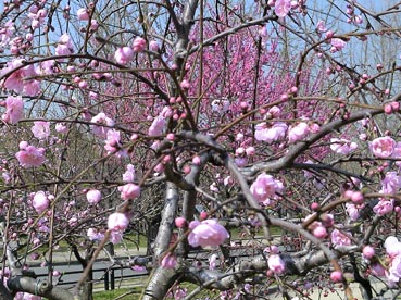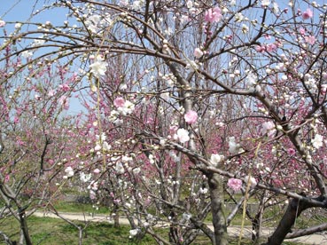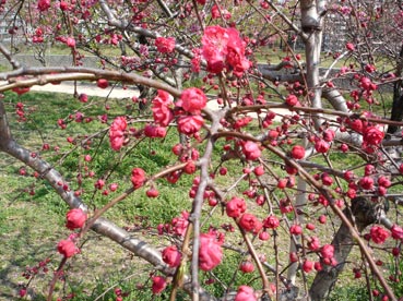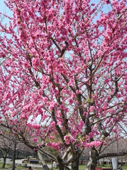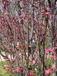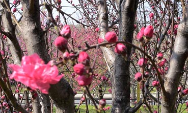 | 大阪城桃園の桃の花は満開だ。 | ![]() |