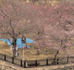 2005年4月5日、大阪城の桜が咲き始めた。