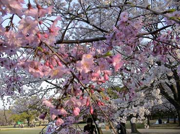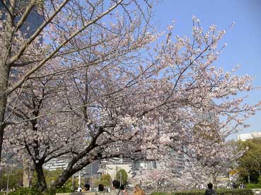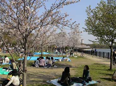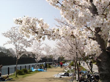 | JR森ノ宮駅から大阪城公園に入っていくと、もう、花見客でいっぱいだ。 | |||||||
