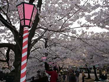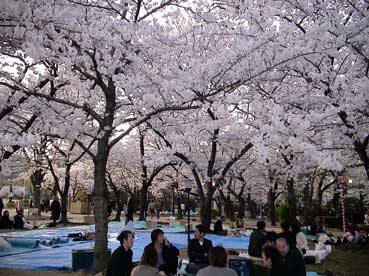 この日は天気もよく、サクラは満開だし、金曜日であったが、たくさんの花見客でにぎわった。