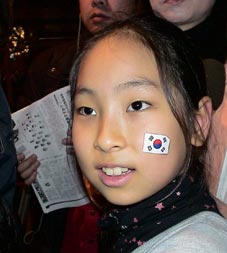 | 応援の仕方を練習。 「ニッポン!チャチャチャ」 「イギョラ!チョソン!チャチャチャ」 「テーハンミングッツ!チャチャチャ」 |
