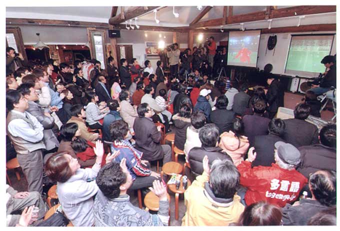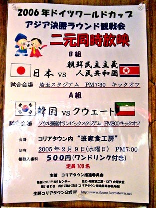 サッカーワールドカップ日本と北朝鮮試合の観戦会があった。
